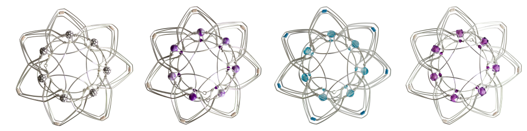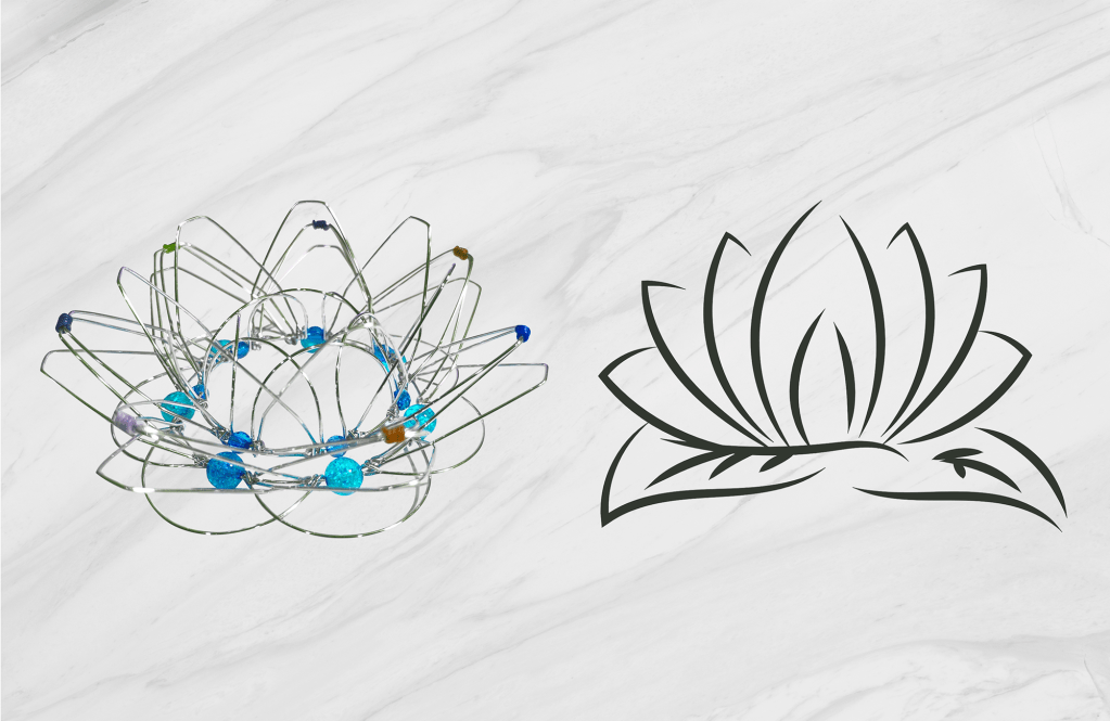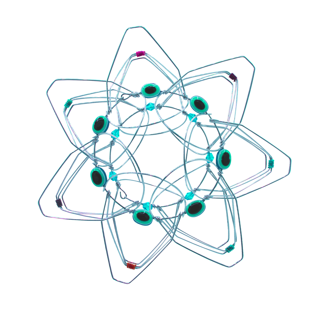Mandalas are crafted from interconnected wire shapes that gracefully twist and fold into over 180 distinct configurations.
